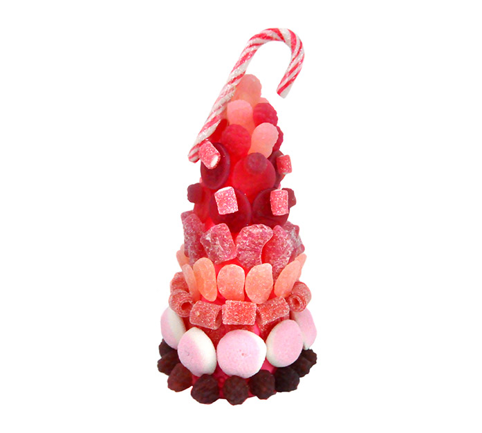 ¿Te gustan los regalos navideños con un toque distinto? Entonces este abeto de 20 cm será la opción ideal. Representa la Navidad más bohemia y dulce, con sus toques rosas, granates y rojos. Contiene una variedad de chuches riquísimas entre las cuales encontrarás las rodajas de sandía, las frambuesas y moras o las pequeñas frutas con sabor a uva… ¡Y encima viene decorado con el clásico bastón de caramelo!
