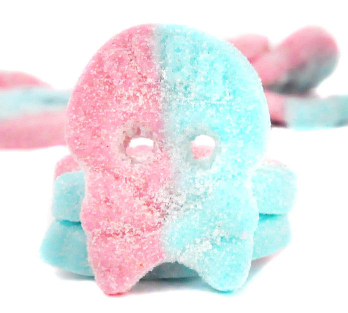 ¿Recuerdas el sabor del clásico chicle de tu infancia? ¿Quieres volver a sentirlo en tu paladar? Pues prueba a pegarle un bocado a nuestra golosina con forma de calavera ácida Dizzy Skalle. Viene combinada en dos colores, azul cielo y rosa chicle, y está recubierta de polvos pica-pica para darle ese toque ácido que tanto nos gusta.