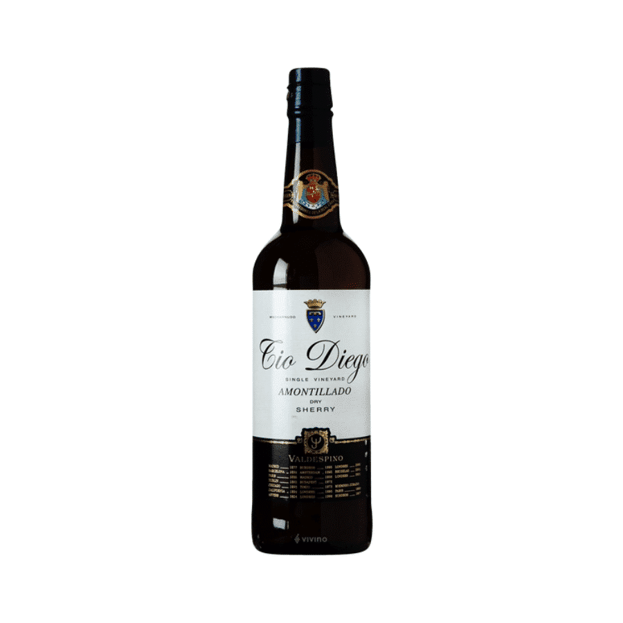 Amontillado Tio Diego (375ml). Tío Diego es un amontillado muy fino, que no se ha alcoholizado por segunda vez, sino que se ha dejado que alcance los 18 grados con la crianza. Parece joven, pero tiene unos 17 años como mínimo de edad media. Cada año, en invierno, se hace una saca que nos deleita una y otra vez con sus recuerdos a velo de flor, avellana y caramelo. La crianza biológica tiene un gran protagonismo, y eso se nota en la complejidad y licorosidad que empieza a mostrar.