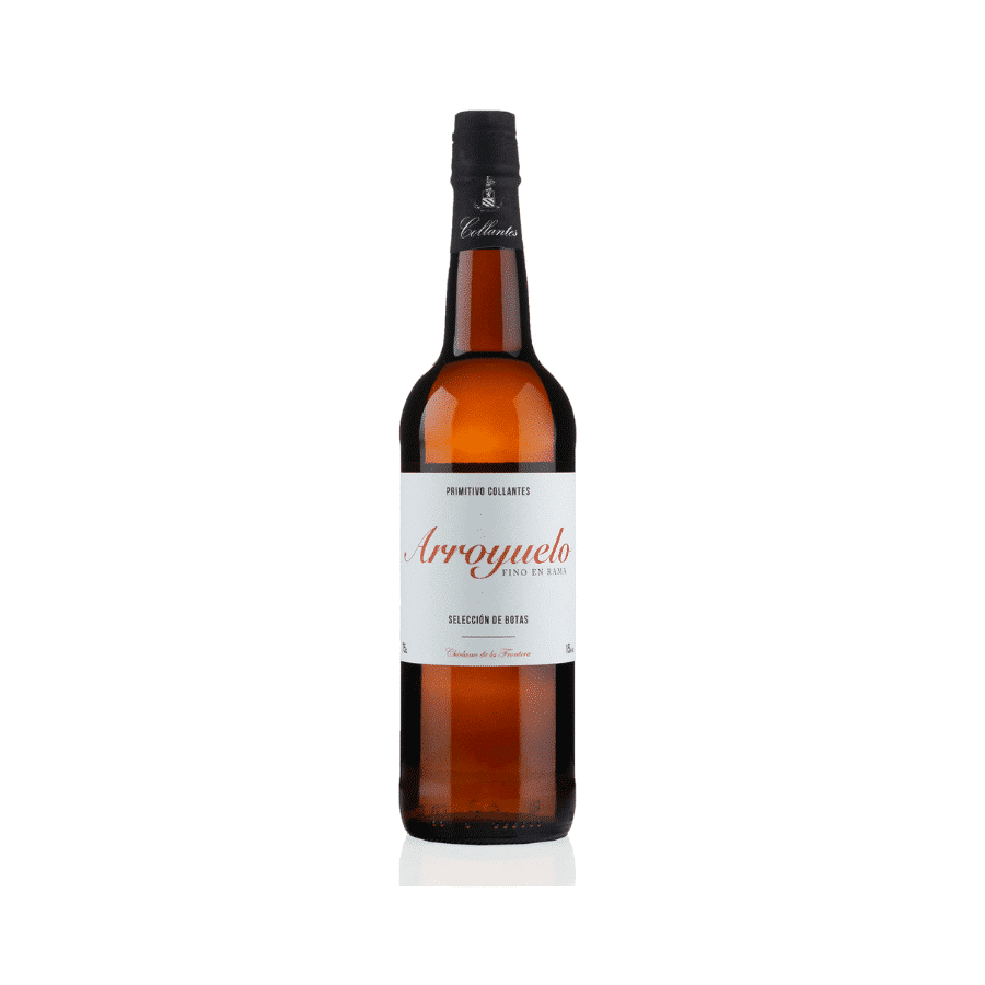 Fino En Rama Collantes (375ml). La versión indómita que la bodega Primitivo Collantes produce de su famosísimo vino fino Arroyuelo. Después de cinco años de criaderas y soleras bajo velo de flor, se embotella sin filtrar directamente de la bota. El hecho de que la bodega se encuentre tan cerca del mar aporta un plus de frescura a sus finos, y si no está filtrado mantiene un carácter almendrado y de mazapán intenso en nariz. Delicado y fino, fino, en boca.