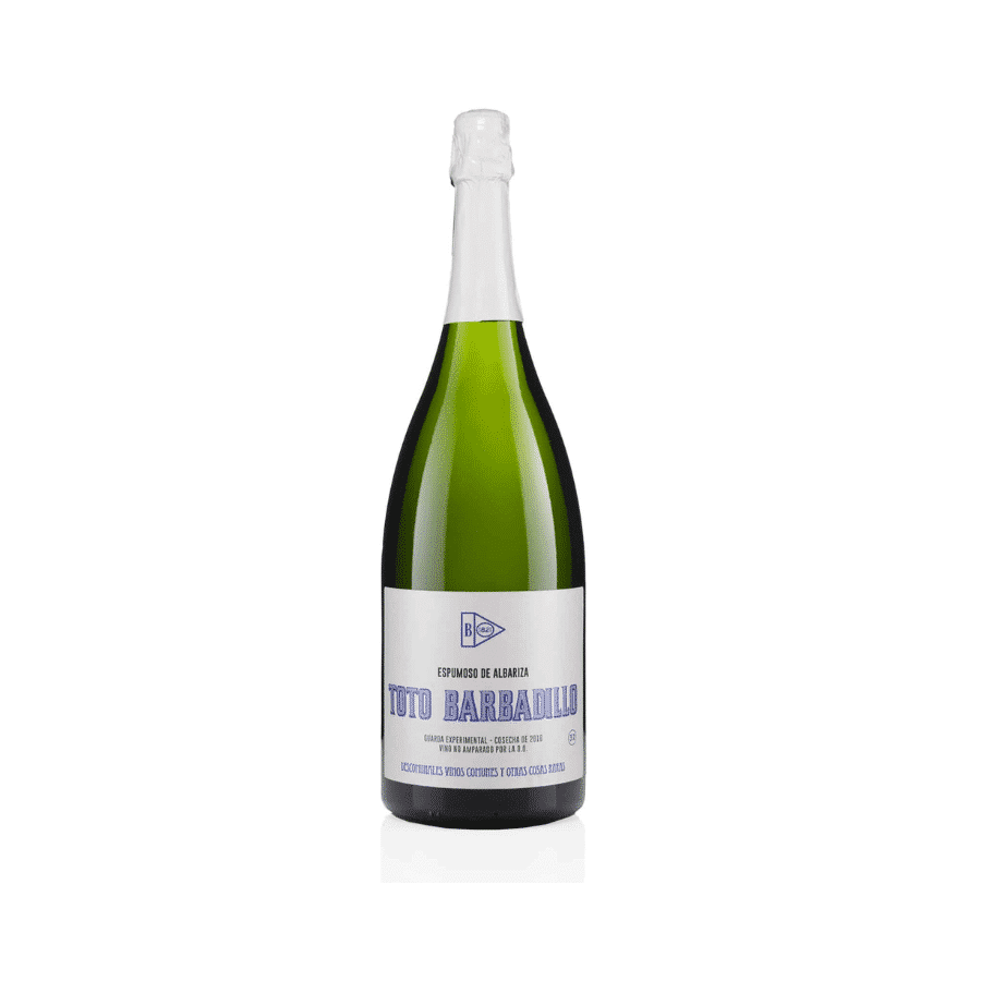 Toto Barbadillo Espumoso 2016 Magnum (1,5l). TOTO Barbadillo es un vino espumoso de Cádiz, elaborado mayoritariamente con palomino de suelos de albariza. Es la tercera generación de espumosos en Barbadillo, aquella en la que la bodega alcanza su crianza más prolongada. Espumoso muy seco que deja ver el calcáreo de la región y que sorprende por la frescura, posiblemente aportada por esos suelos tan espaciales del Marco de Jerez.